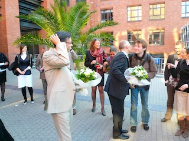 Certes, la signature officielle se fait toujours au petit matin, au greffe du tribunal sous le contrôle inquiétant d’une greffière peu aimable ... Heureusement, la Mairie de Lille organise des cérémonies républicaines de PACS qui permettent à la famille et aux amis de profiter de ce moment important pour les pacsés. Je tiens au passage à souligner l’extrême gentillesse et diligence du personnel de la Mairie de Lille à cette occasion.
