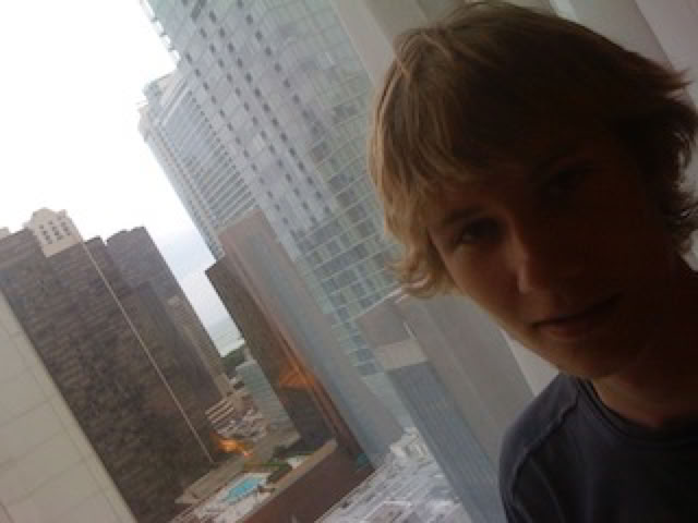 Service de «Valet» pour la voiture ($49 par jour ... mais comme dirait Matthieu, un parking normal, on n’a pas le même service !), personnel pour les bagages, grand lobby, etc ... la Classe ! L’hôtel est très plein (c’est le premier WE de vacances là bas) et on ne peut pas avoir de chambre avec des lits king-size ... mais belle consolation, on a une chambre au dernier et 17e étage (la 17-26) avec une très jolie vue. On voit des buildings, un petit bout du Lac Michigan, la piscine découverte de l’Holiday Inn ... Trés belle salle de bain aussi ... mais argh ... pas d’Internet gratuit.