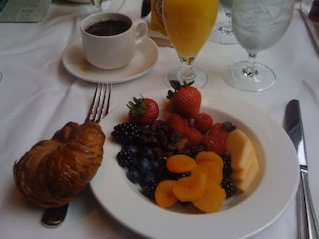 On se lève un peu tard ce mardi : Matthieu et moi sommes encore un peu fatigués de la journée à Six Flags la veille, mais Matthieu fait honneur au généreux petit-déjeuner du Winham Hôtel, surtout les fruits frais …