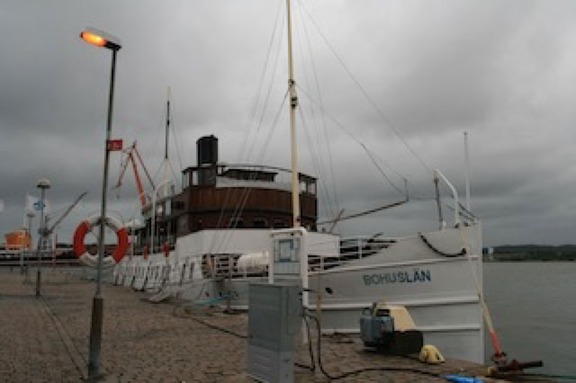 Avec la voiture de location (Volvo S40), on va d’abord à Marstrand, petite île très chic et agréable. On dépose la voiture sur un parking (payant comme toujours en Suède) et on prend le bac à pied pour traverser le bras de mer ... d’environ 300m. Le temps se dégage miraculeusement : il fait presque trop chaud ! On fait le tour de l’île par le sentier. Paysages magnifiques, côte sauvage, petites maisons typiques ... et pour finir un bon café avec une bonne pâtisserie sur le port.