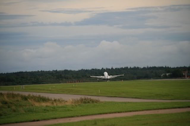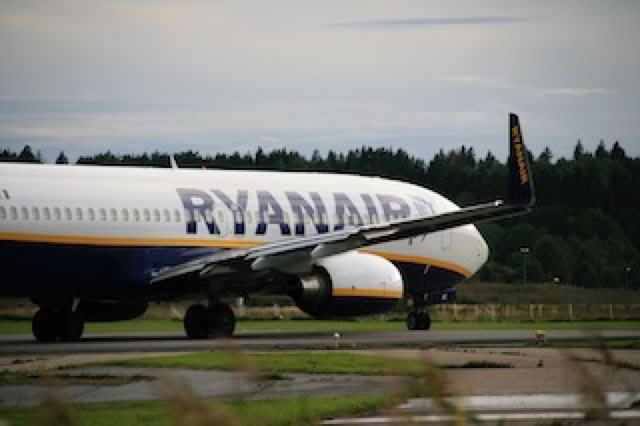 Au retour, pour le fun, on passe à City Airport (l’aéroport Low-Cost de Goteborg) et la route passe juste dans l’axe de la piste :il y a même un feu rouge quand les avions décollent. On s’arrête pour observer au plus prés le décollage d’un 737 de Ryanair. On n’est pas tout à fait dans l’axe mais presque ! Belle vision sur l’avion et bruit sympathique.