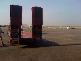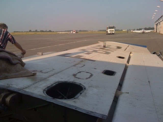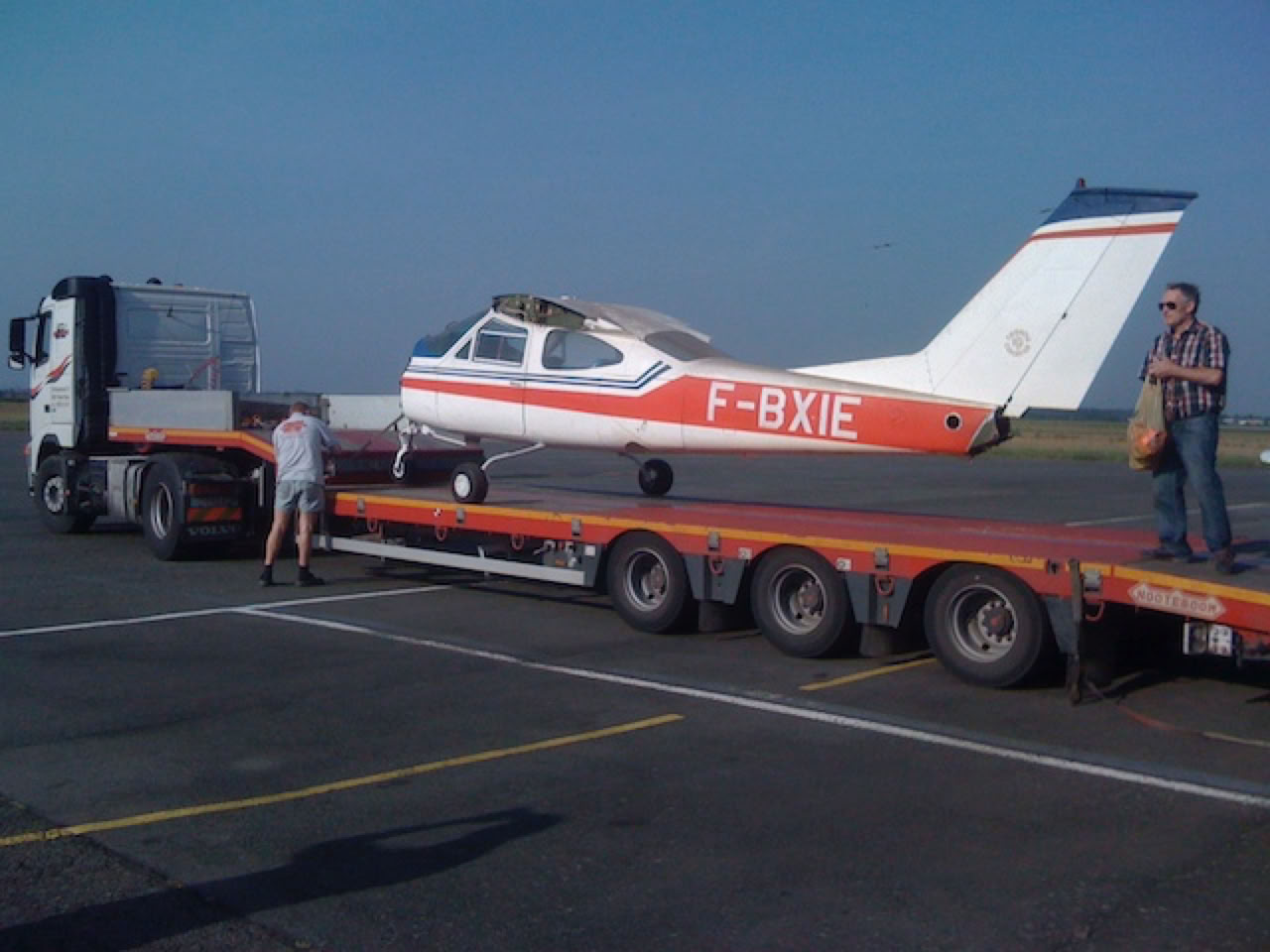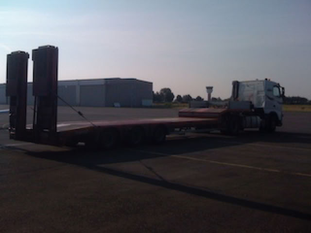 Départ du Cessna. La cellule a simplement été roulée sur le plateau. La largeur de celui-ci était d’ailleurs juste suffisante pour la largeur du train d’atterrissage.
