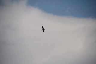 Là, nous avons la chance d’observer un groupe d’aigles d’une envergure exceptionnelle. Ils tournoient, puis se posent en groupe sur un surplomb pas trop loin. Une petite dizaine d’aigles se regroupent ainsi avant de reprendre leur envol et de profiter d’une ascendance pour tournoyer, monter vraiment très haut avant de disparaître plus loin.