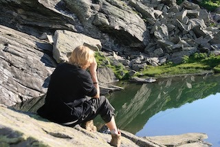 De là, on continue la descente à pied et on s’arrête pour manger sur un gros rocher, en plein soleil, avec vue sur le torrent qui descend de la montagne.
