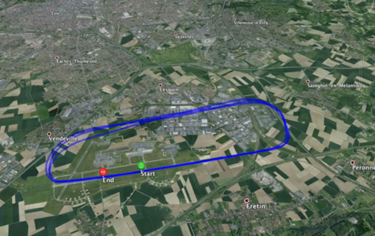 3 tours de piste main droite, sans aucun problème. La trace GPS révèle en plus un belle régularité de trajectoire. Avec le vent de face, l’avion monte comme un ascenseur et permet de virer avant l’autoroute à 500 ft.
