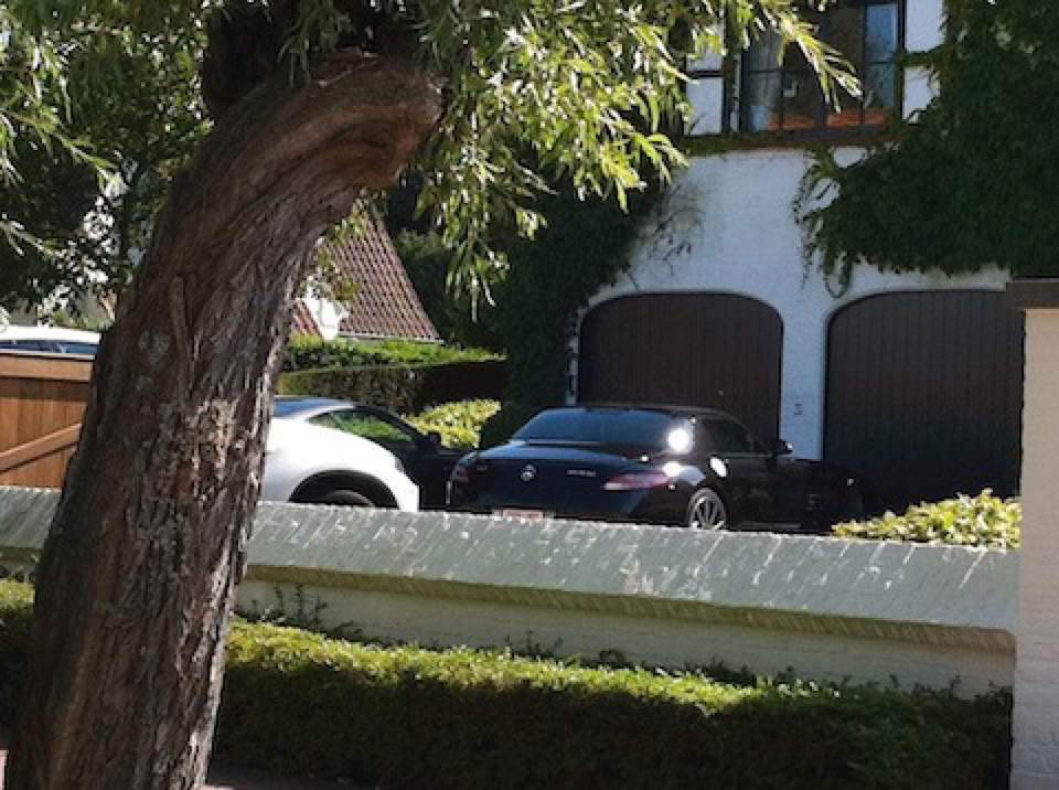 Une SLS et une Aston devant le garage d’une grande villa …