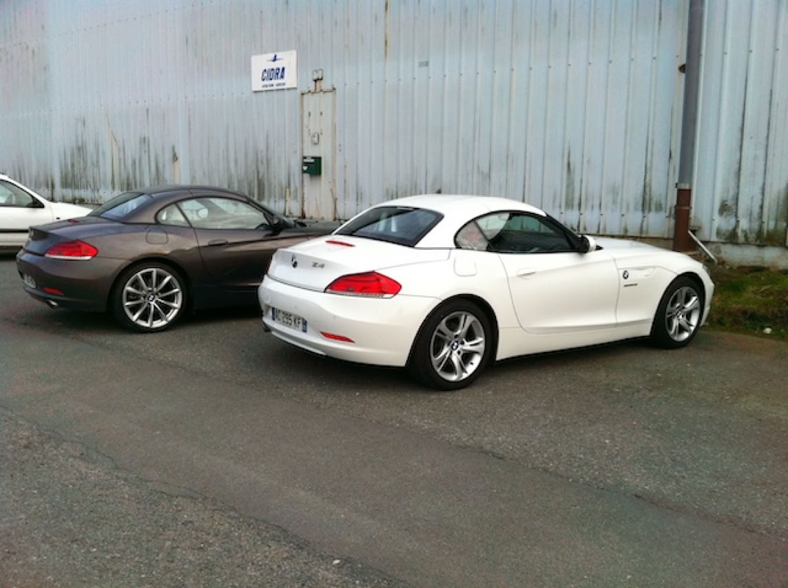 Ce vol commence ... par un rassemblement de deux Z4 devant le CALM : le mien, 23i et jante de 17’’, rencontre son grand frère 35i ... et jantes de 19’’ :) Discussion sympa avec son propriétaire et pilote aussi au CALM.