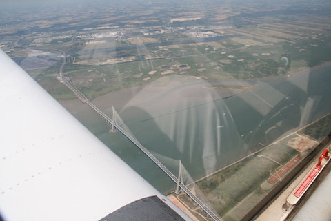 Aller : Lesquin / Abbeville / Eu sur Mer / St Valery / Le Havre St Romain / Deauville piste 12. CAVOK partout. Pratiquement tout au niveau 45, donc pas de problème pour le survol des zones interdites des centrales nucléaires (on évite quand même de passer verticale !). Plusieurs 360° autour du pont de Normandie (le point ED) en attendant que le contrôleur ne nous autorise à nous intégrer dans le circuit d’aérodrome.