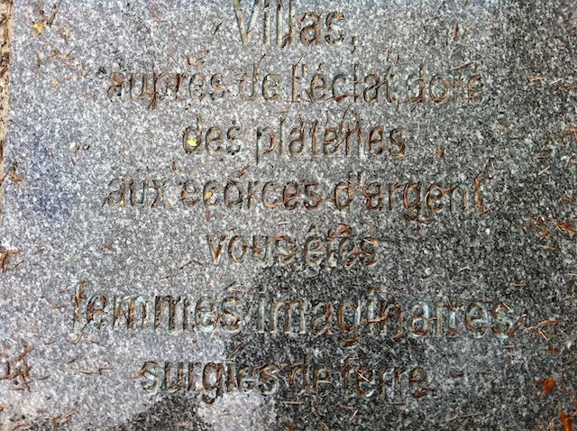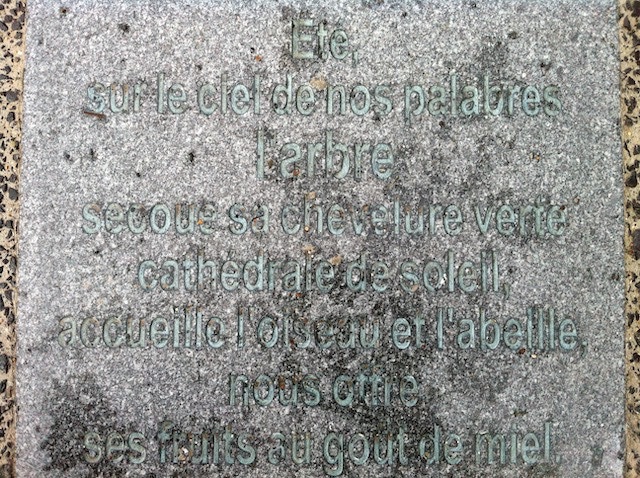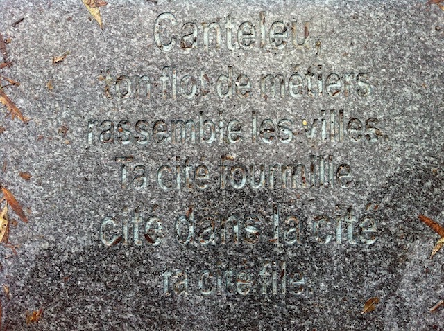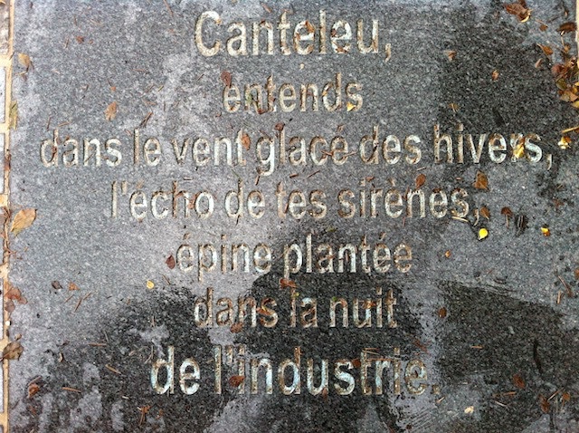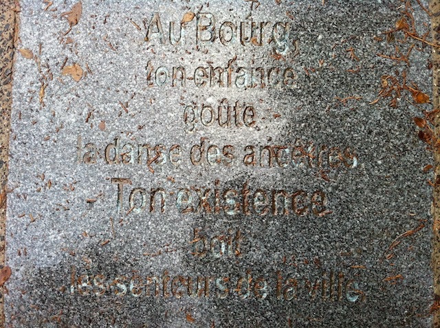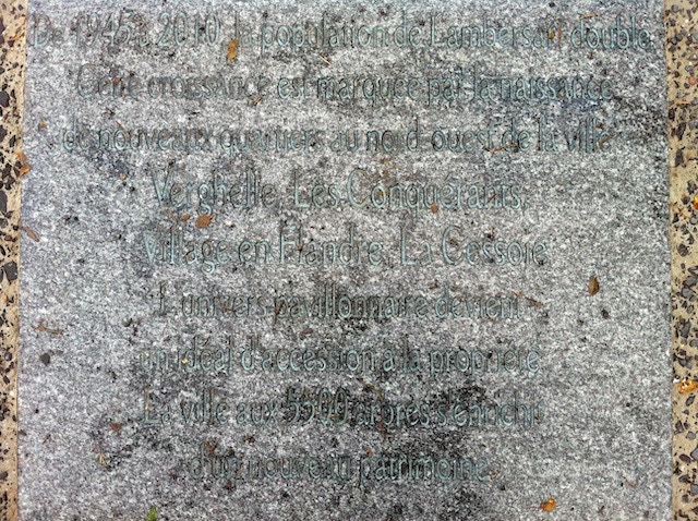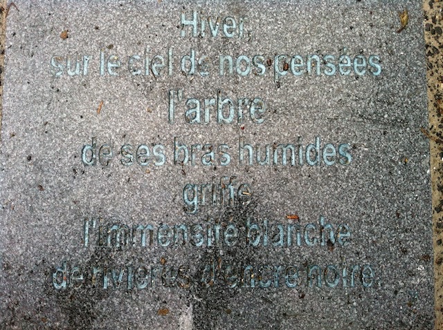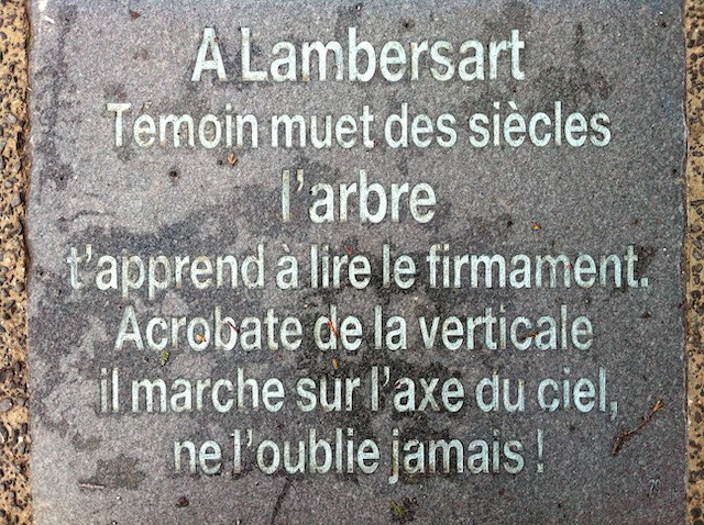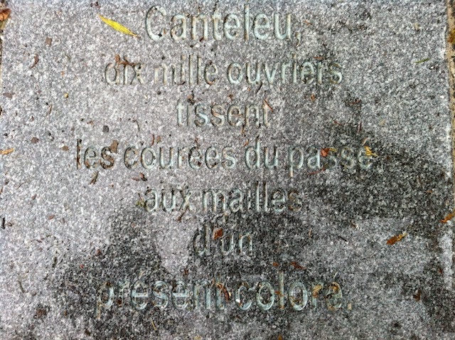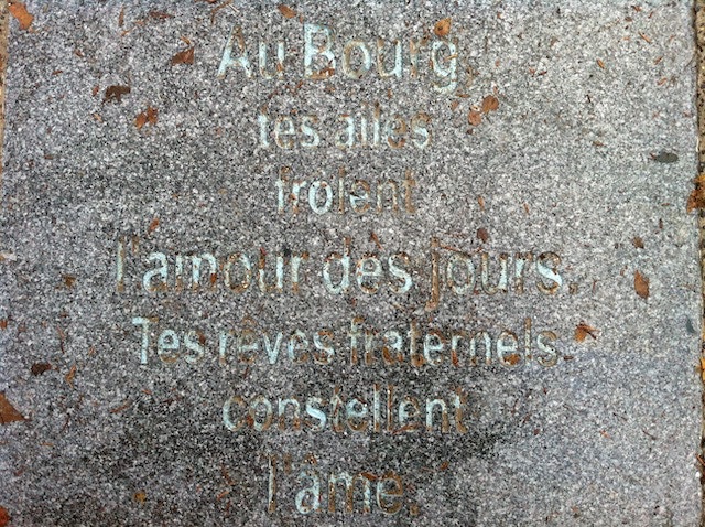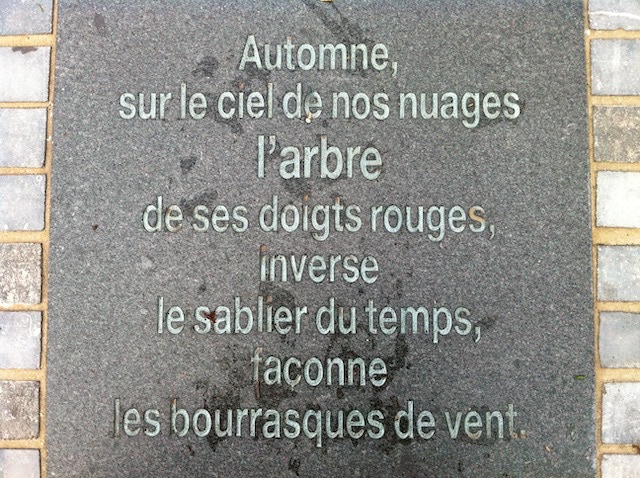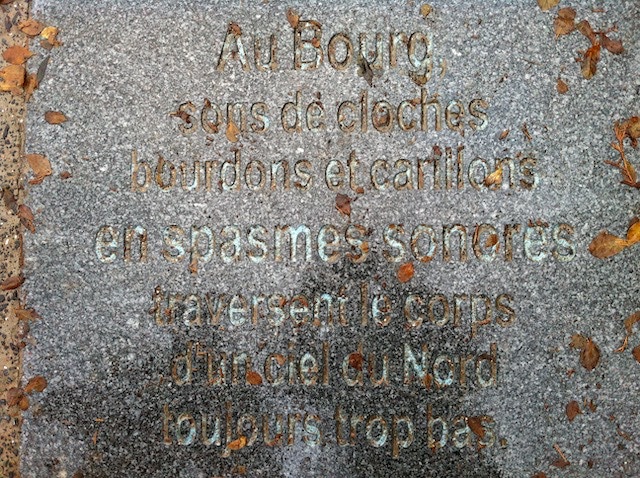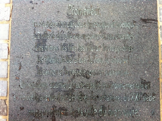 Sur l’Avenue du Maréchal Leclerc à Lambersart en pleine rénovation, 30 plaques gravées des textes écrits par Martine Salmon-Florin sont maintenant incrustées dans les trottoirs, formant ainsi un «chemin poétique» comme l’annonce la première de ces dalles (ci-dessus).