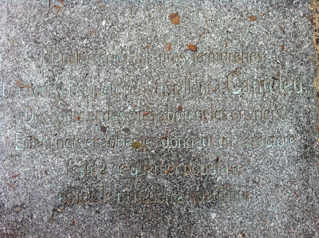 L'oeuvre poétique de Martine Salmon, ma grande soeur, gravée pour de longues années sur les trottoirs de l'Avenue du Général Leclerc à Lambersart