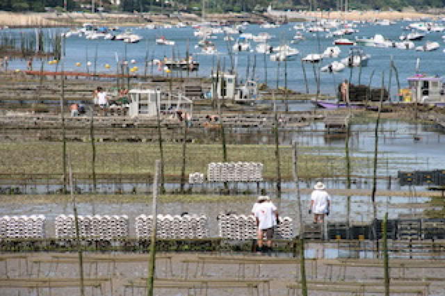 Comme nous n’avions pas eu le temps de rester au Cap Ferret à l’issue de notre tour à vélo du Bassin, on retraverse le bassin, en bateau, pour passer l’après-midi sur la presqu’île. L’arrivée à marée basse est superbe avec les parcs à huîtres découverts.
