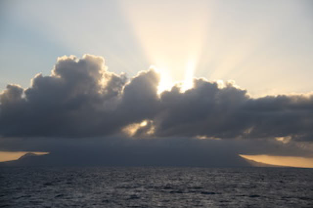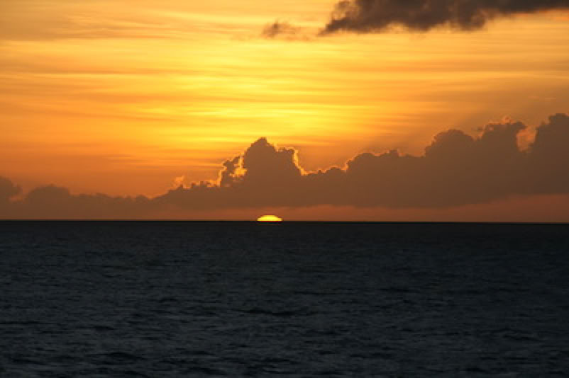 Poursuite du farniente tout l'aprés-midi, discussions avec Fabienne et Charles, fin de journée sur le pont supérieur, avec un coucher de soleil spectaculaire, entre les nuages et la montagne de l'île de St. Kitts : décidément, les couchers de soleil aux Caraïbes son magiques ... mais encore plus sur un voilier.