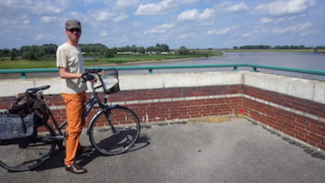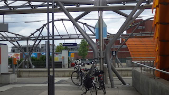 Afin de tester les vélos que nous utiliserons pour notre randonnée, Klaus nous emmène pour un tour à vélo autour d’Emsdetten. Nous commençons par la gare où Pierre achète les billets de train pour le lendemain. Certaines parties de la promenade ressemblent plus à du trial ... pas très adapté aux vélos de type hollandais que nous utilisons.