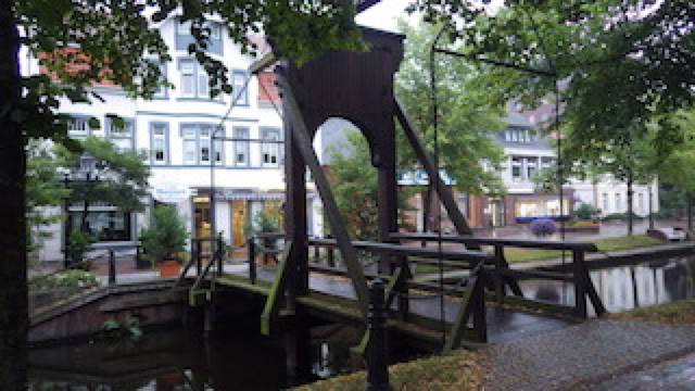 Première étape à Leer : le centre historique est vraiment joli et la ville très commerçante. Nous visitons le «Teemuseum» : musée est un grand mot pour ce petit endroit néanmoins charmant qui retrace l’histoire de la maison de café et surtout de thé «Bünting» : quelques machines, de la porcelaine, et une jolie suspension de théières.