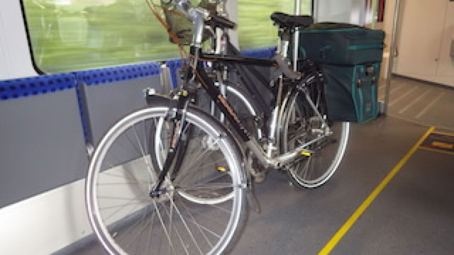 Arrivée à Emden vers 13h, rapide collation et nous embarquons les vélos dans le train, voie 3 (un peu difficile à trouver ...), départ à 14h. Nous avons de la chance car nous sommes les premiers à rentrer des vélos, mais le compartiment va rapidement se remplir !