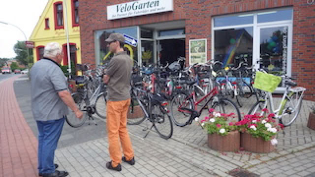 Vers la fin de la promenade, Klaus nous invite pour manger une glace chez un bon glacier du coin. Nous nous arrêtons aussi au «Velo Garten» pour changer la selle du vélo de Klaus qui commençait à s’abimer : comme c’est le vélo que je vais utiliser, Klaus a la prévenance de la changer avant.