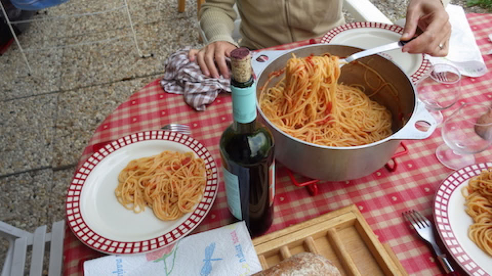 Après les (très) fortes émotions de la veille et pour laisser reposer les muscles endoloris (Dieu que la marche de la terrasse est haute ...), ce sera principalement farniente aujourd’hui. Pierre, toujours courageux, descend néanmoins au village acheter du pain et un Tétu poilu. Et donc après un petit déjeuner tranquille, un peu de lecture au soleil ... ou à l’ombre et un bon déjeuner (poulet au barbecue), se pose la question de l’activité du jour.