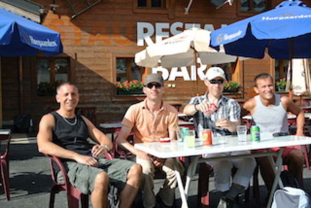 Nous redescendons ensuite sur Châtel en passant par le Col de Saix ... qui sent, comment dire, le brun : un paysan est en train de faire de l’épandage ! Retour enfin au chalet sous la grosse chaleur, où nous retrouvons Christophe et Xavier en train de rotir sur l’herbe. Néanmoins, contrairement aux apparences, ils sont aussi sortis faire du sport : un mini-golf !