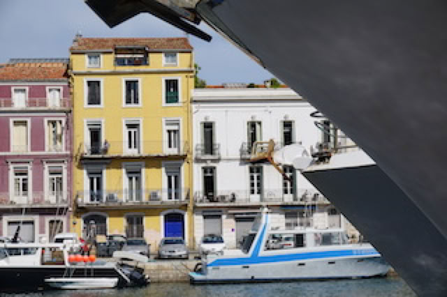 On reprend la voiture pour trouver un café ouvert. Nous pensons en trouver un dans le charmant village de Saint Jean de Cuculles 😎 : négatif, pas un chat ! C’est un peu plus loin que nous nous hydraterons avec un double Perrier-Grenadine ! Direction Sète par les petites routes.