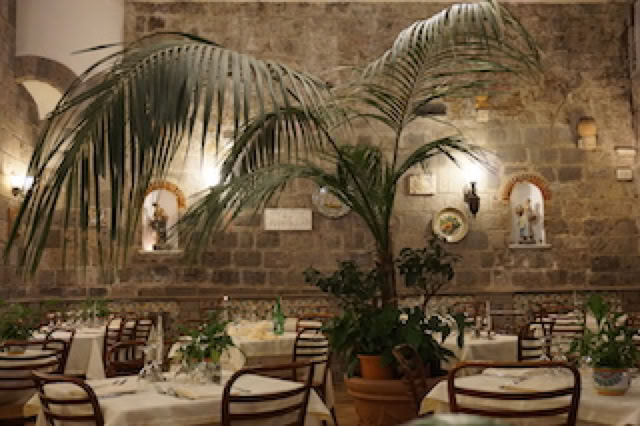Retour à l'hôtel pour un peu de repos avant de partir vers un restaurant, le Parrucchiano, conseillé par l'hôtel (normal, c'est le même propriétaire, et ils font 10% de remise … pour un paiement en cash !). L'endroit est beau : de grandes salles sous de grandes serres verdoyantes et étagées, adossées à un bâtiment ancien. Problème, il fait un peu frais (on est quand même en novembre), l'endroit est quasiment désert (trois ou quatre couples dans ces grandes salles) et les vieux serveurs semblent un peu fatigués. Le tout est un peu trop silencieux. Ambiance un peu étrange donc, et la cuisine ne présente rien d'extraordinaire, sans être bon marché pour autant. Heureusement, on aura nos 10% Happy