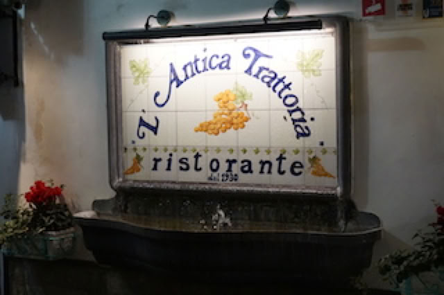 Retour donc à Sorrento. Petit tour sur la terrasse de l'hôtel : on voit le Vésuve de l'autre côté de la baie, mais le temps est décidément bien brumeux. Ce soir, c'est décidé, on met les moyens pour diner dans un bon restaurant, l'Antica Trattoria. On ne va pas le regretter : belle salle, belle table, service attentif. Le menu "dégustation" nous permet cette fois de savourer un cuisine raffinée, avec quelques touches de citron, LE produit de la région. Au dessert, la glace au citron est accompagné d'un petit verre de limoncello. Et puis, il y a ce sympathique joueur de mandoline, avec son air de Paul Préboist, capable de passer rapidement de Simon & Garfunkel au folklore napolitain. Et puis quand même, c'est tellement romantique Happy Lui aussi nous parle de la France et de Paris, où il a d'ailleurs vécu.