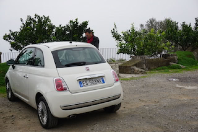 Aujourd'hui ce sera tourisme le long de la côte amalfitaine avec notre petite Fiat 500.