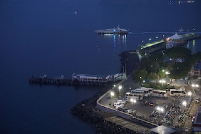 Retour à Capri, où nous attendons, assez longtemps, le bus qui nous redescendra directement au port de Marina Grande, sans passer par la case Capri centre. Nous attendons le bateau du retour assis en bout de jetée, loin des myriades de touristes chinois ou japonais, et nous profitons un peu de la douceur de cette fin de journée. Le bateau de 16h30 arrive, la foule embarque … et Pierre n'arrive plus à remettre la main sur les billets … bon moment de stress et de fouille nerveuse dans le sac à dos. Evidemment, les billets sont retrouvés et nous voila sur le retour. Il fait chaud et j'en profite pour une petite sieste.