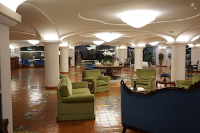 A l'approche, une hésitation fatale entre les indications du GPS et les panneaux de direction nous embarque dans un dédale de petites routes, de plus en plus étroites, bordées de hauts murs. Inquiétant avec le sentiment qu'on va se retrouver définitivement coincé dans un entonnoir de ruelles, en pleine nuit. Et d'ailleurs, Pierre sursaute violemment quand je racle bien involontairement le rétroviseur droit de la Fiat sur le mur qui borde cette minuscule route. C'est avec un grand soulagement que nous revenons finalement sur la route qui nous ramène à Sorrento, et malgré un dernier détour du GPS, nous sommes content de remettre les clés de la Fiat au voiturier de l'hôtel.