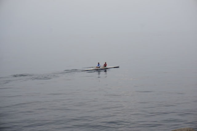 Comme nous avions prévu de prendre notre temps ce matin là pour nous reposer et profiter du petit-déjeuner, c'est donc sur le bateau rapide de 11h45 que nous embarquons, avec un retour réservé à 16h30 seulement. Heureusement, le trajet est rapide (20') et la mer défile très vite derrière les hublots au raz des vagues.