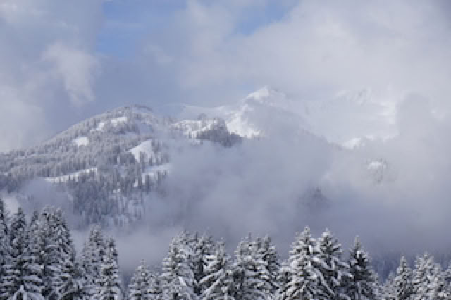 Vers 16h, le ciel se dégage, l'occasion d'aller faire un tour à pied au village, acheter du pain, quelques magazines, prendre la météo. Bonne nouvelle : il va encore neiger dans la nuit, mais il fera beau dans la matinée. L'idéal pour le ski.