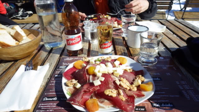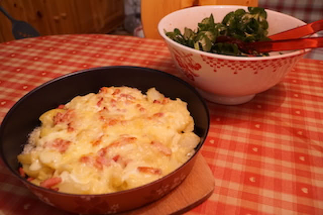 Retour optimisé à l'appartement, repas rapide et sieste! Descente à Châtel pour acheter des cartes postales ... et du VitroClen ! Pour le diner Pierre prépare une excellente tartiflette maison. Soirée télé.
