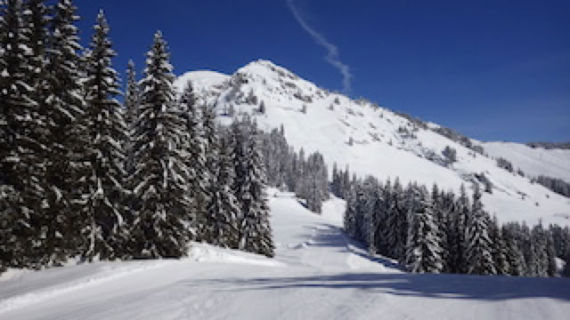 Retour quand même par Super Châtel, la liaison fonctionne à nouveau. Beaucoup de plaisir sur la piste bleue qui longe la rouge des Combes : large, personne, neige extraordinaire ! Puis descente par le chemin jusqu'à Chatel.
