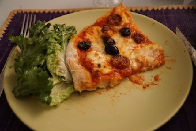 Fin de journée tranquille. Je m'occupe un peu du petit A. qui réclame beaucoup d'attention. J'arrive même à le faire dormir dans mes bras, en lui chantant doucement une berceuse (Brahms …) Et comme globalement nous n'avons pas envie de retourner au restaurant pour le dîner, Fabien nous concocte deux magnifiques pizza faites maison ! Excellentes et moelleuses. Et hop, au lit !