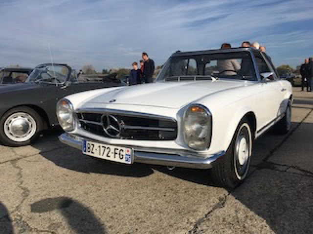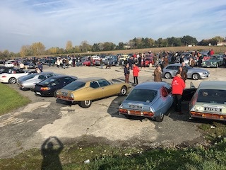 Je quitte Marc et Stéphane à 10h ce dimanche matin (ils emmènent leurs nièce à Belwaerde) et en attendant le déjeuner en famille à 12h30, je décide d’aller regarder passer les avions à Bondues car il fait beau et c’est l’occasion de s’aérer. Et quand j’arrive au terrain de Bondues, avec mon cabriolet blanc, je remarque quelques voitures anciennes sur le parking adjacent. Un monsieur s’approche de ma Z4 et engage la conversation. Il a une Z3. Il m’explique qu’il y a un rassemblement tous les premiers dimanche du mois, normalement pour les voitures d’avant 1975. Néanmoins, comme je vois des voitures un peu plus récente, je décide de rejoindre ce rassemblement avec ma 2009 :). Et c’est comme ça que je me retrouve de façon inattendue au milieu de dizaines de voitures magnifiques qui arrivent de façon continue jusqu’à midi. C’est magique. Et au passage, ma Z4 attire pas mal de curieux. Mais évidemment, rien de comparable avec la Jaguar Type E cabriolet qui est venu se garer à côté. Il y a une magnifique brochette de Citroën SM. Je discute avec le propriétaire d’une Porsche 928 S4, responsable du Club 928-Nord et on échange nos coordonnées. Il me donne l’adresse d’un garage à St Amand, et il a peut-être 4 jantes d’origine à me proposer pour ma 928.
