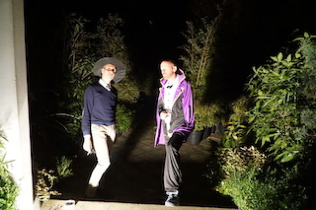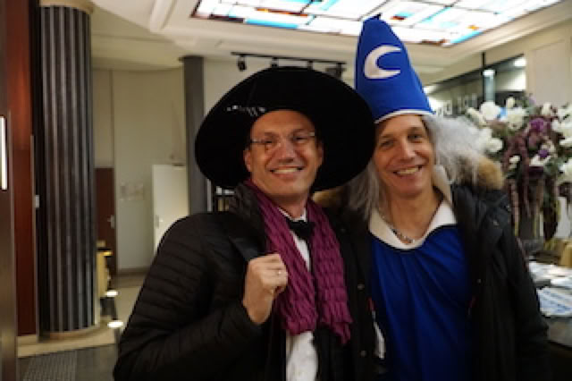 A l’hôtel Art Deco pour certains, nous nous préparons pour la soirée. Gros fou-rire pour les Morues Ch. et Vi. quand Ch enfile son costume de magicien, plus proche de l’univers Mickey que de celui de Harry-Potter. Ses longs cheveux gris lui vont à ravir. Le plus drôle est évidemment de se retrouver en costumes dans le hall de l’hôtel et de parcourir ainsi les 500m jusque chez Morues St. et Ma. (en plus, il fait carrément froid ce soir !)