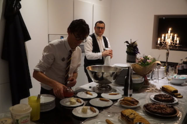 Puis retour à la cuisine où Morues Ma. et St. nous servent une succulente glace maison, accompagnée d’un coulis de fruits rouge, de gâteaux et de quelques biscuits qui nous font des doigts 😂 …
