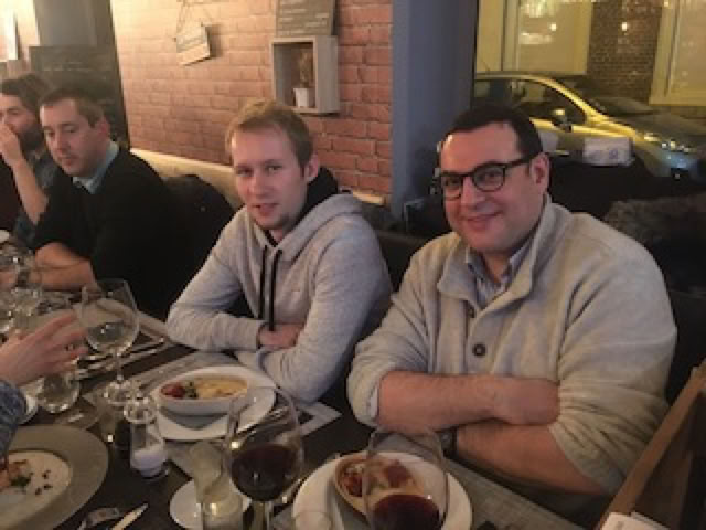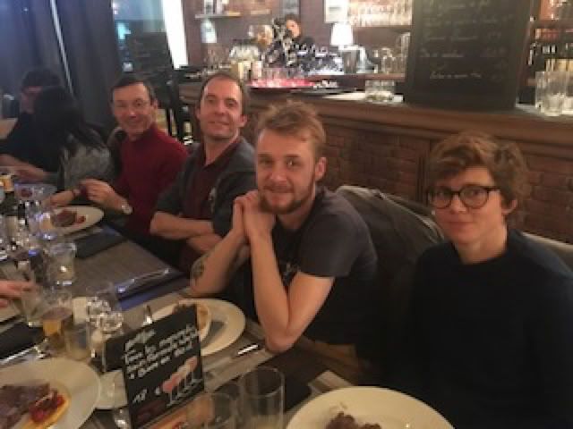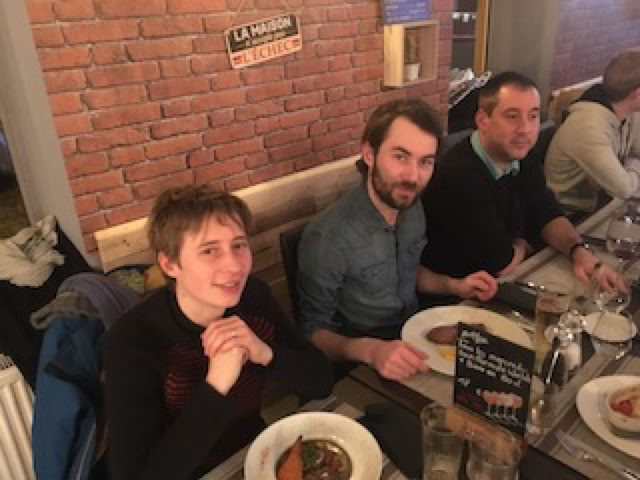 Avec Pierre et Matthieu, nous allons ensuite passer la fin d’après-midi à Roubaix chez Annie et Thierry, Annie qui nous gâtera avec quelques bonnes crêpes : miam ! Puis nous repartons sur Lille : Matthieu fera le chauffeur d’élite pour Fatima avec la Série 1. Nous arrivons un peu avant 20h30 « Aux Bons Vivants », un sympathique restaurant recommandé par Emeric, dans le quartier de Wazemmes. Marc et Stéphane nous attendent déjà, et nous sommes bientôt rejoints par Philippe et Philippe-Henry, Emeric, Léa et Julie, Tristan. Avec Matthieu, Pierre, Fatima et moi, c’est donc une belle et sympathique tablée de 12 qui s’installe.