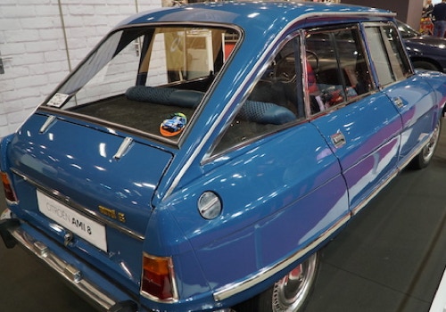 Matthieu et moi déambulons donc au travers de ce vaste hall rempli de merveilles et de souvenirs automobiles (souvenirs surtout pour moi évidemment, quand il s’agit par exemple d’une modeste Citroën Ami8 bleue … même si la mienne, dite la Tomate, était rouge). C’est aussi les 100 ans de Citroën qui présente un stand chronologique exceptionnel. Nous croisons deux de mes collègues, Philippe Robert et Jean-Michel Hayet et faisons quelques stands ensemble.