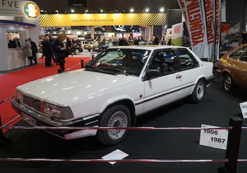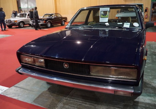 Nous changeons de hall vers 21h. Matthieu qui a l’estomac dans les talons prendra au passage un bon muffin en attendant le dîner. Dans le Hall 3, nous nous concentrons surtout sur les « voitures à moins de 25000 € » : on y trouve une jolie 924 auto à plus de 10000 € … ce qui est plutôt encourageant pour Matthieu qui avait acheté la sienne 4000 €. A priori un bon investissement. De même, une 928 à 23000 €, certes en bon état mais en version américaine et auto, me redonne un peu le sourire par rapport à la mienne. J’ai aimé bien aussi une belle Lancia Gamma coupé et une originale Fiat 130.