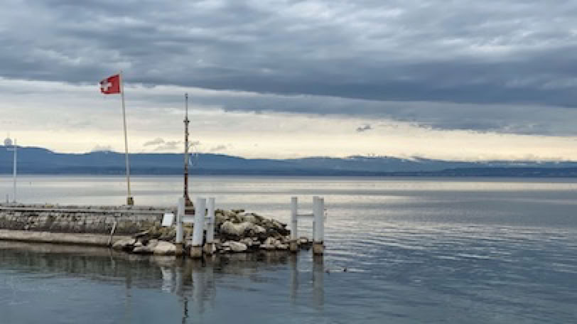Pause casse-croute sur un banc devant le lac, avant de reprendre la voiture vers Châtel.