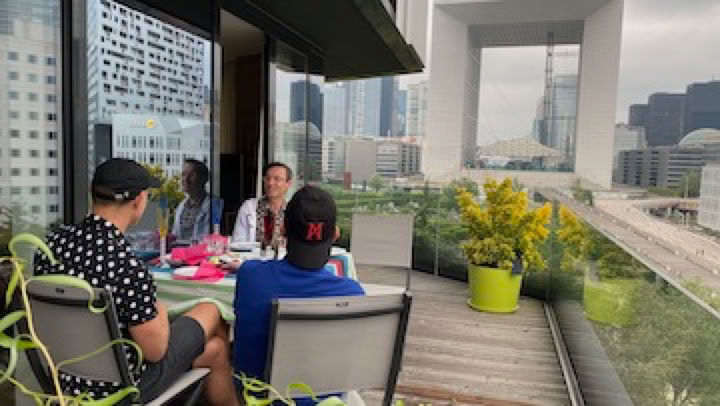 Avec quelques heures d’avance (dimanche soir) sur l’heure officielle, nous fêtons le déconfinement avec nos sympathiques voisins. On sort évidemment les belle coupes et le Champagne !