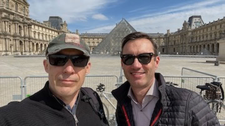 Le confinement a eu ceci de positif que des voies cyclables, qui n’avaient pas pu se faire depuis des années pour cause de tracasseries administratives et de tergiversations politiques, ont été réalisées en quelques semaines seulement, pour désengorger les transports en commun et les routes au moment de la reprise. Pour nous, ça ne change pas grand chose pour le boulot, mais en tous cas, c’est vraiment cool de pouvoir aller de chez nous, La Défense, jusqu’à la Place de l’Etoile uniquement sur des pistes cyclables et en 25’ environ. On peut même pousser au delà : les ex-voies sur berge, la rue de Rivoli, le tunnel de l’Etoile, etc … sont livrés aux vélos. Nous profitons de l’occasion avec Pierre, avant que le trafic ne reprenne vraiment pour faire un tour jusqu’au Louvre, dans un Paris quasiment sans voitures … et surtout sans touristes ! 😀😀😀