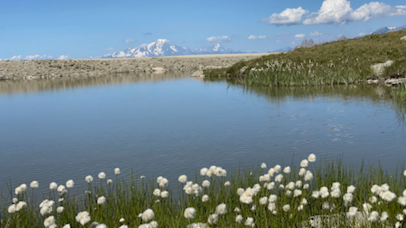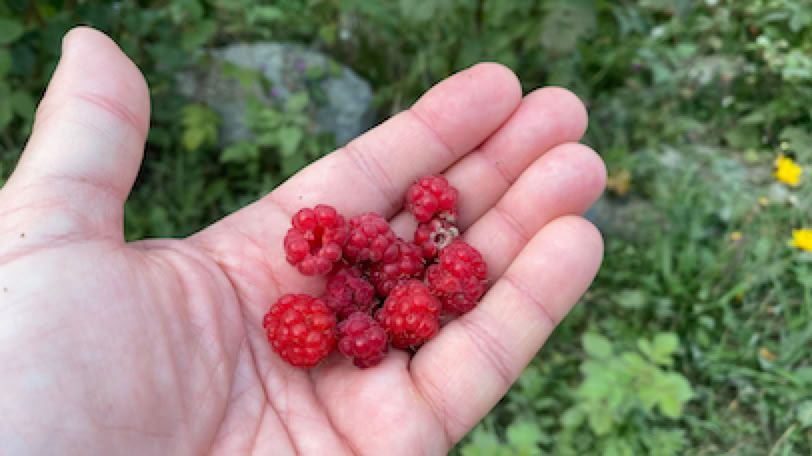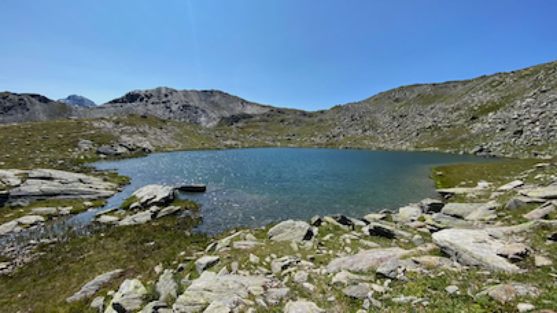 Cette fois, nous utilisons successivement le télécabine rénové de St Martin 1, puis le télésiège de St Martin 2 (ouvert, cette fois) pour arriver en haut de Tougnête. Belle vue sur Méribel … et son altiport (on n’ira pas voler cette année). Nous avions prévu de faire la classique descente vers St Martin mais nous choisissons de prolonger cette randonnée par un très long détour par le Pas de Cherferie, le Verdet et jusqu’au col de Jean, globalement sur un très beau chemin de crête. Peu avant le Col de Jean, nous tombons sur de vastes champs de myrtilliers et nous en profitons évidemment pour profiter de ces délicieuses myrtilles sauvages. Arrivés au « Grand Lac » nous observons dans l’eau de curieux gros têtards, au ventre rouge. Recherche faite, il s’agit de tritons alpestres. Nous commençons la longue descente vers St Martin où nous arrivons seulement à 19h00, après avoir trouvé quelques rares framboises.