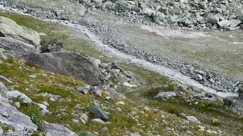 Avec la fonte de la neige, un passage est maintenant dégagé et nous permet de faire la descente du Péclet par l’autre versant. C’est la première fois que nous prenons ce chemin et c’est très beau aussi, plus sauvage. A mi-descente, Matthieu repère nos premières marmottes, de l’autre côté d’un torrent en contrebas. Toujours sympa. Le reste de la descente et tranquille et rejoint le chemin habituel par le Lac aux Grenouilles.