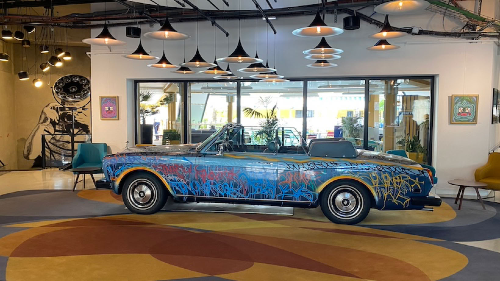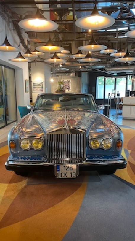 Arrivée vers 11h et perception d’une confortable chambre avec vue sur la piscine extérieure et sur ce superbe édifice typiquement art-déco. A la réception, une originale Rolls-Royce Corniche, peinte par un artiste : chic ! Nous enfilons nos maillots de bain, les peignoirs et pantoufles de l’hôtel et nous descendons au bord de la piscine.