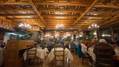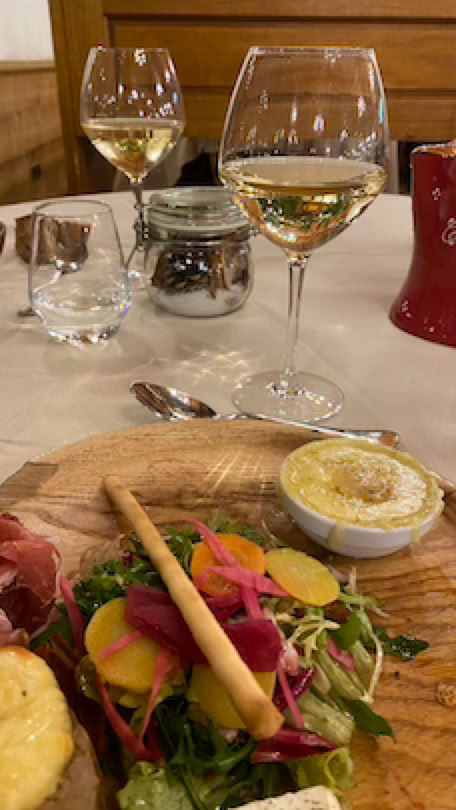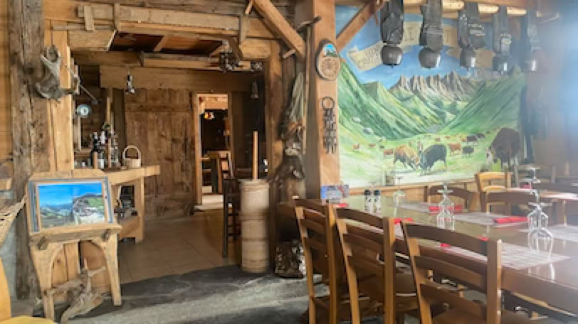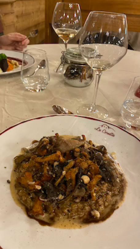 Puis retour à l’appartement, repos (encore) et nous descendons dîner aux Cornettes à la Chapelle d’Abondance. Nous sommes dans la belle salle, à une grande table ronde, pour deux. Menu classique pour les Cornettes. En plat, Pierre aura de l’Omble Chevalier, et pour ma part, je teste un délicieux et généreux risotto aux champignons. Nous sommes plutôt raisonnables … Retour et dodo, car demain matin, c’est sûr, on va skier !