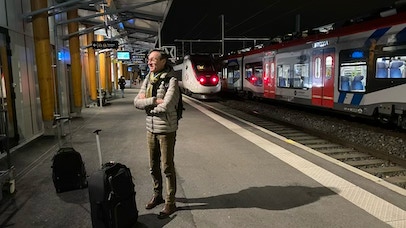 C’est une première : nous partons à Châtel en train. Paris 17:04 … avec un TGV en retard de 25’ au départ, arrivée à Annemasse vers 20:44 après un voyage finalement très confortable : sieste et lecture pour moi, travail pour Pierre. Pendant le trajet je vais me restaurer à la voiture bar, avec un croque-monsieur, un yaourt et une boisson. Quelque jeunes-hommes déguisés en policier commencent visiblement une soirée d’enterrement de vie de garçon. Arrivés à Annemasse, nous attendons 10’ que le chef de gare termine la manoeuvre de séparation des TGV … pour qu’il nous remette les clés de la Ford Fiesta de location qui nous montera jusqu’à Châtel. Ceci dit, heureusement que ce service de remise de clef existe puisque que les agences de location ferment à 18h. Montée à bonne allure jusqu’à Châtel, pas de monde, ni de neige d’ailleurs. Arrivée discrète à l’appartement. Stéphane et Valérie sont déjà couchés. Nous pensions que Marie, Rémi et leur petit seraient là … et finalement non. Nous nous faufilons donc dans la petite chambre pour une bonne nuit … Qui finalement, ne sera pas bonne du tout pour moi. De toute évidence, ce que j’avais mangé à la voiture bar du TGV a beaucoup de mal à passer. Même si le pire est évité, je suis bien fatigué le lendemain matin.