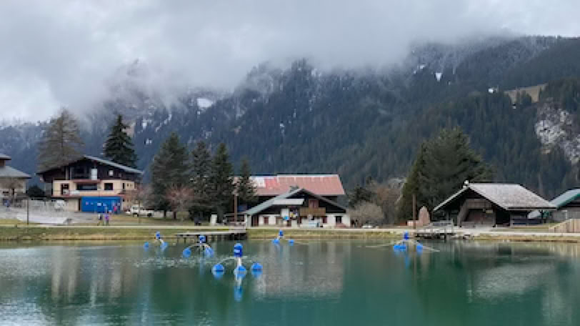 Pierre se lève tôt pour regarder le temps par la fenêtre, pour savoir si l’on peut aller skier … et la réponse est clairement non (pluie, nuages …). Bref, de nouveau une modeste grasse-matinée pour moi. Néanmoins, vers 11h, le temps s’est un peu calmé et nous décidons de faire un tour au Lac de Vonnes. Pour cela, en descendant vers Châtel, nous empruntons le chemin qui passe derrière le village : nous ne sommes pas déçus ! Le chemin est boueux et très glissant. C’est un miracle si nous ne nous retrouvons pas les fesses dans la boue, surtout en descente. Nous arrivons néanmoins au Lac de Vonnes, et plutôt que de retourner directement, nous décidons d’essayer le chemin qui part près du parking du télésiège et qui monte vers le Lac de Morgins. C’est encore un peu boueux et glissant, mais nous arrivons néanmoins en moins de 20’ au lac de Morgins, encore gelé, lui. Le plus étonnant, c’est que ce chemin est beaucoup plus direct et moins escarpé que celui que nous empruntions jusqu’à présent (en été) pour nos retours de randonnées. L’impression d’avoir trouvé un raccourci dans l’espace-temps !