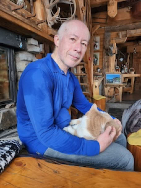 La météo ce matin-là ne permet pas décemment de skier … et je n’ai pas très envie non plus. Il y aura une fenêtre météo mercredi ! Pour compenser, nous partons en milieu de matinée pour le Chalet du Mouët (encore … mais c’est une randonnée qu’on aime bien). Nous montons un peu plus vite que deux jours avant avec ma belle soeur (mais l’important, c’est de le faire, pas de faire un chrono) et nous arrivons au chalet sous une drôle de neige qui ressemble plutôt à du gros sel. Nous prenons un verre à l’intérieur car il fait trop humide pour rester dehors. Le chat de la maison vient ronronner un bon moment sur mes genoux, jalousé par le chien. Redescente rapide. Déjeuner et repos, Pierre descend à Châtel chercher le pain puis enchaîne sur une visio professionnelle. Dîner, repos … Oui, on se repose beaucoup. Le soir, nous regardons un film très triste (« Une âme secrète ») … Dans la nuit, on voit au loin les phares des dameuses qui s’évertuent à refaire de belles pistes malgré le mauvais temps …