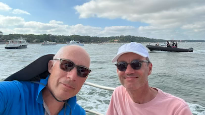 Enfin, dernière étape vers le Cap-Ferret. Nous prenons nos billets pour le bateau retour, mais nous avons une heure devant nous : nous retournons chez Fredelian pour un moment en terrasse. Puis un petit tour du Ferret en vélo avant de rejoindre la jetée Belisaire et d’embarquer pour Le Moulleau. On aura fait environ 75 km : une paille !